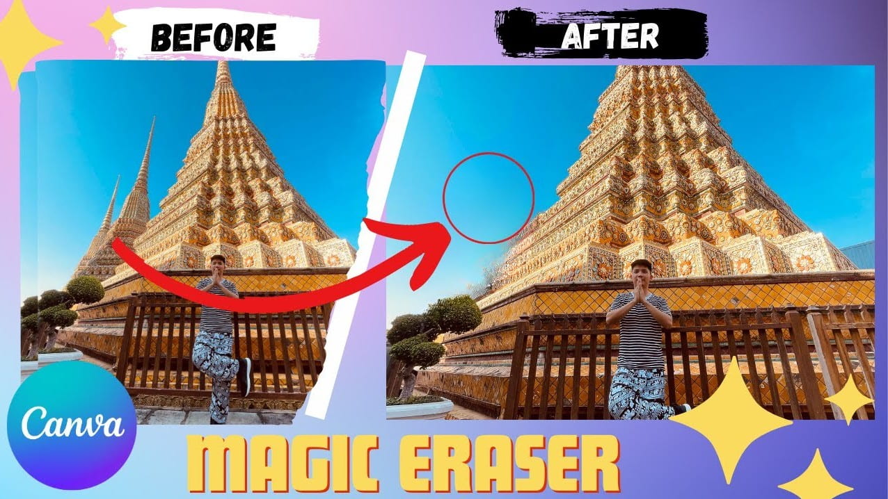Có những bức ảnh đẹp nhưng lại bị hỏng bởi một chi tiết nhỏ: người đi ngang qua, biển quảng cáo thừa hoặc vật thể gây rối mắt. Với Magic Eraser (Xóa Magic), Canva AI sẽ giúp bạn loại bỏ mọi yếu tố không mong muốn chỉ trong vài giây.
