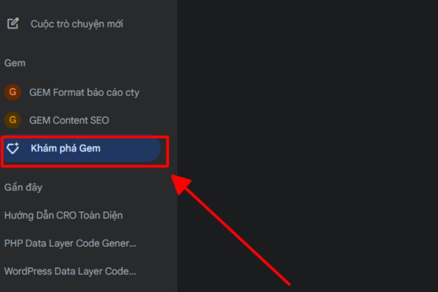 Việc đăng nhập là bước quan trọng vì Gem cần hiểu bạn là ai, bạn đang dùng tài khoản nào và đâu là thông tin cần đồng bộ hóa trong suốt quá trình làm việc. Khi đã vào được giao diện chính, bạn sẽ thấy phần khám phá Gem nằm ở khu vực bên trái màn hình, nơi tập trung tất cả các lựa chọn liên quan đến việc tạo và quản lý trợ lý AI cá nhân hóa của riêng mình.