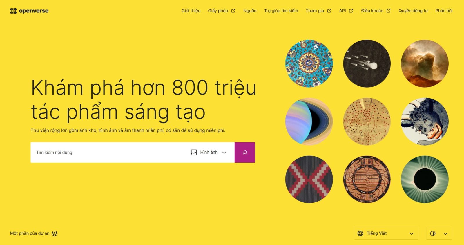 Openverse là một dự án của WordPress, nhằm xây dựng công cụ tìm kiếm tập trung cho các tài nguyên mở. Điểm hay của Openverse là khả năng tổng hợp hình ảnh từ nhiều nguồn khác nhau, bao gồm cả Flickr, Wikimedia và các nền tảng Creative Commons.