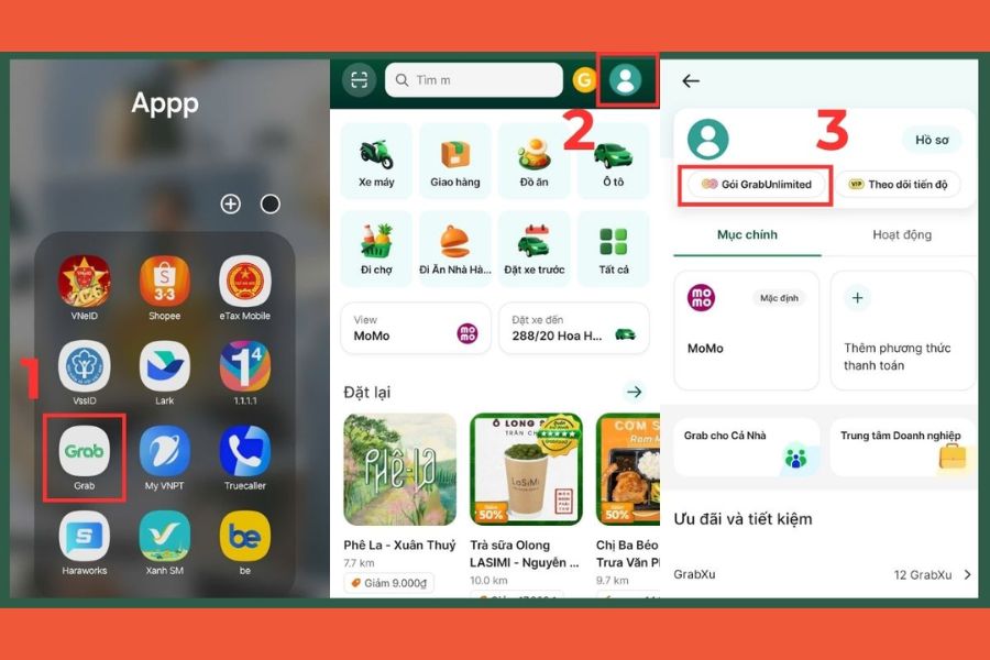 Bạn mở ứng dụng Grab trên điện thoại, sau đó nhấn vào biểu tượng tài khoản (avatar) ở góc màn hình. Đây là nơi quản lý toàn bộ thông tin cá nhân và các dịch vụ bạn đang sử dụng trong hệ sinh thái Grab.