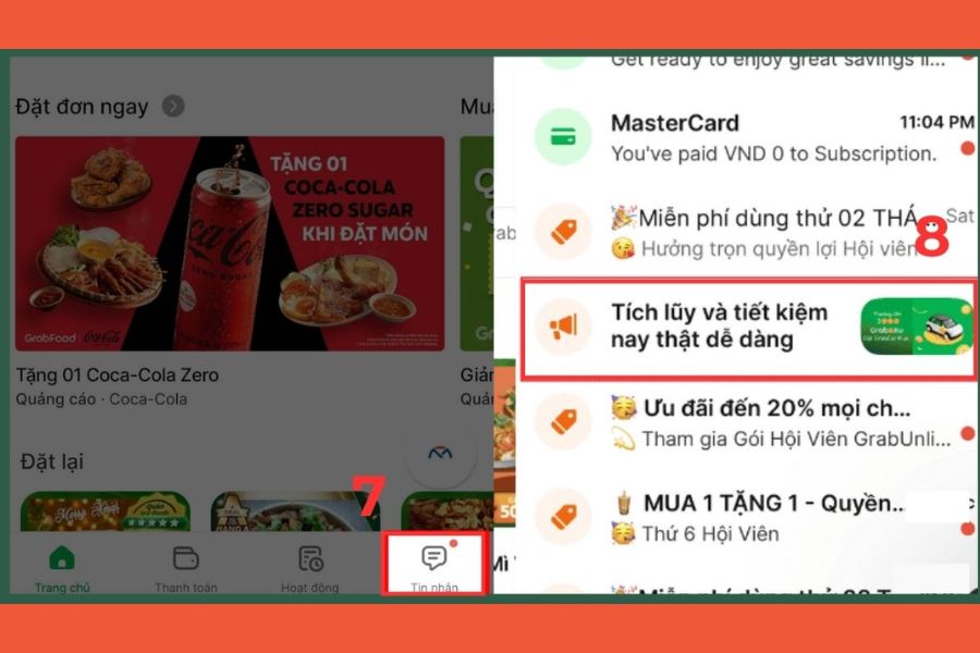 Sau khi kích hoạt thành công, bạn vào mục Tin nhắn trong ứng dụng Grab. Tại đây, hệ thống thường gửi các ưu đãi dành riêng cho thành viên.