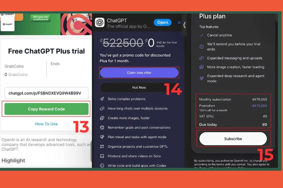 Sau khi xác nhận, hệ thống sẽ kích hoạt gói ChatGPT Plus miễn phí (nếu mã ưu đãi còn hiệu lực). Bạn có thể bắt đầu sử dụng ngay các tính năng nâng cao trong thời gian khuyến mãi.