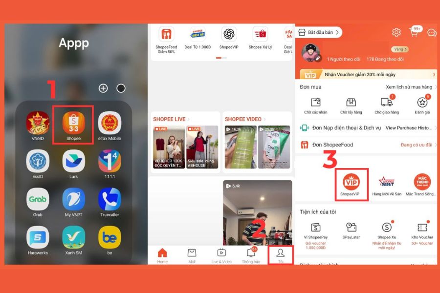 Tiếp theo, chọn mục Shopee VIP (hoặc Premium nếu có). Nếu chưa đăng ký, bạn chỉ cần nhấn Đăng ký ngay và xác nhận để kích hoạt quyền lợi thành viên.
