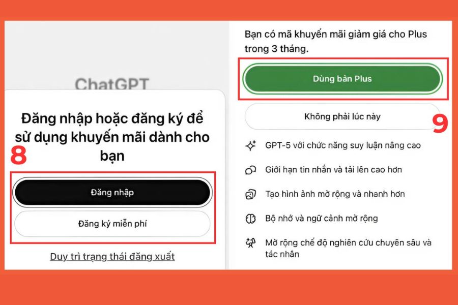 Bạn sao chép mã thưởng và mở đường link được cung cấp, sau đó đăng nhập vào tài khoản ChatGPT của mình. Đây là bước cuối để kích hoạt gói Plus miễn phí.