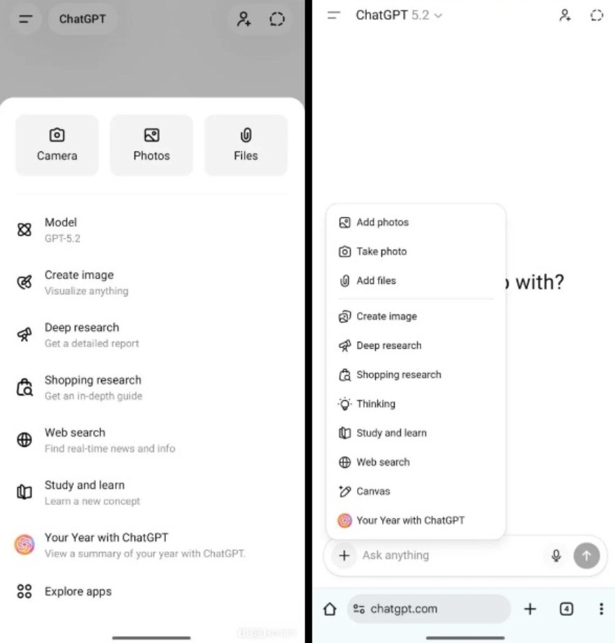 Tính năng này được phát hiện trong phiên bản 1.2026.006 của ứng dụng ChatGPT dành cho Android và hiện vẫn đang ở giai đoạn thử nghiệm. OpenAI chưa công bố thời điểm triển khai chính thức, cũng như chưa xác nhận liệu giao diện này có được áp dụng đồng loạt hay không. Một chi tiết thú vị là giao diện ChatGPT trên Android hiện tại trông gần như giống hệt giao diện web khi truy cập trên thiết bị di động, nhưng trên web, người dùng không cần phải cuộn menu để truy cập các tùy chọn đính kèm. Điều này cho thấy OpenAI vẫn đang trong quá trình tìm kiếm sự cân bằng tối ưu giữa tính nhất quán và tính phù hợp với từng nền tảng.