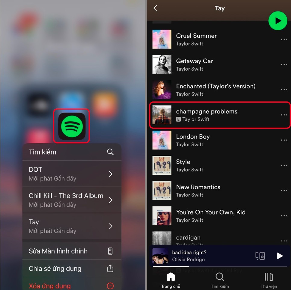 Bước 2: Chọn bài hát mà bạn yêu thích. Bạn có thể tìm kiếm bằng thanh tìm kiếm hoặc chọn từ playlist đã lưu sẵn trên tài khoản.