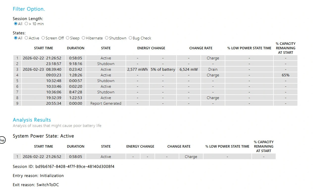 Báo cáo này cho phép bạn thấy rõ những gì đã xảy ra trong lúc laptop tưởng chừng đang ngủ.