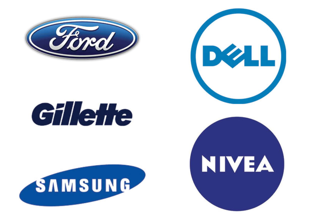 Theo thống kê năm 2012 của Interbrands.com, trong top 100 thương hiệu toàn cầu, nếu có 19 thương hiệu dùng màu đỏ trong logo và bộ nhận diện thì có đến 28 hãng sử dụng màu xanh dương.