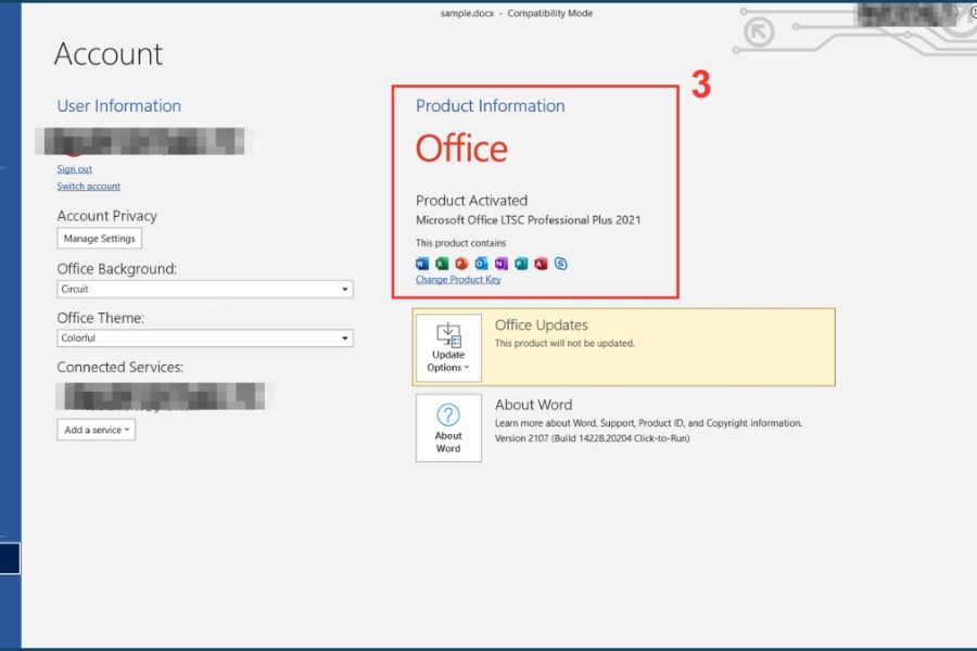 Khi gặp lỗi “The Selection Is Locked”, việc đầu tiên bạn nên làm là kiểm tra trạng thái bản quyền của Microsoft Office. Bạn chỉ cần mở Word, vào tab File rồi chọn mục Account để xem thông tin tại phần Product Information. Nếu phần mềm chưa được kích hoạt hoặc đã hết hạn dùng thử, hệ thống sẽ tự động khóa tính năng chỉnh sửa. Trong trường hợp này, bạn chỉ cần đăng nhập tài khoản bản quyền hoặc nhập key kích hoạt là có thể mở khóa ngay và sử dụng lại bình thường.