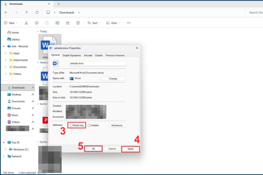 Trong nhiều trường hợp, file Word được mở ở chế độ chỉ đọc nên bạn không thể thao tác chỉnh sửa. Để khắc phục, hãy đóng file lại, tìm đến vị trí lưu tệp trên máy, nhấp chuột phải và chọn Properties. Tại tab General, bỏ chọn mục Read-only rồi nhấn Apply và OK. Sau đó mở lại file trong Microsoft Word, bạn sẽ thấy quyền chỉnh sửa đã được khôi phục đầy đủ.