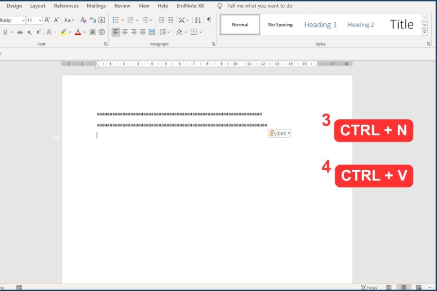 Nếu không thể mở khóa trực tiếp, bạn vẫn có thể “lách” lỗi bằng cách sao chép nội dung sang một tài liệu mới. Hãy mở file bị khóa, nhấn Ctrl + A để chọn toàn bộ, sau đó Ctrl + C để sao chép. Tiếp theo, tạo file mới bằng Ctrl + N và dán nội dung bằng Ctrl + V. Cách này giúp bạn tiếp tục chỉnh sửa mà không bị ảnh hưởng bởi các thiết lập khóa của file cũ, đặc biệt hữu ích khi cần xử lý gấp.