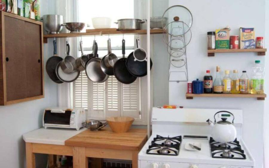 Không gian bếp nhỏ cần được chụp sao cho gọn gàng và sáng sủa. Ưu tiên góc chéo, ánh sáng tự nhiên và màu sắc tươi sáng giúp căn bếp trông rộng hơn.