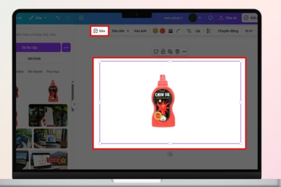 Tiếp theo, bạn nhấn vào mục “Tải lên” để đưa hình ảnh từ máy tính hoặc điện thoại lên hệ thống. Khi ảnh đã xuất hiện trong thư viện, chỉ cần kéo thả trực tiếp vào khung thiết kế là bạn đã sẵn sàng cho bước chỉnh sửa. Đây là bước nền tảng nhưng rất quan trọng, vì chất lượng ảnh đầu vào sẽ ảnh hưởng trực tiếp đến độ đẹp và tự nhiên sau khi thay background.