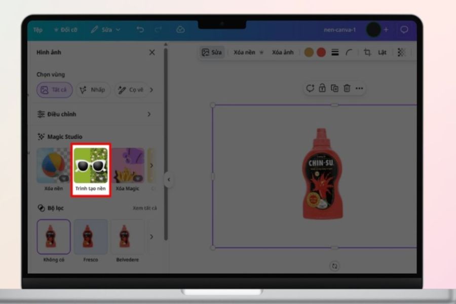 Khi truy cập vào Magic Studio, bạn chọn Trình tạo nền (Background Generator) hoặc công cụ liên quan đến chỉnh sửa nền. Canva sẽ tự động quét hình ảnh, nhận diện chủ thể chính và tách khỏi nền cũ mà không cần bạn phải cắt thủ công. Quá trình này diễn ra chỉ trong vài giây nhưng độ chính xác khá cao, đặc biệt với ảnh chân dung hoặc sản phẩm rõ nét.
