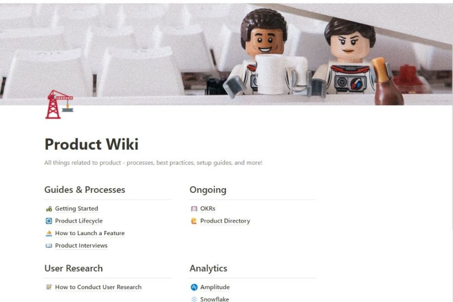Bước 2: Trong trang chính, tạo danh sách các chủ đề lớn như “Quy trình làm việc”, “Tài liệu tham khảo”, “Kinh nghiệm dự án”. Sau đó, với mỗi chủ đề, bạn có thể liên kết đến một trang con bằng cách gõ “@” rồi chọn trang cần liên kết. Cách này giúp mọi nội dung đều có sự kết nối, dễ dàng tra cứu mà không phải tìm kiếm thủ công.