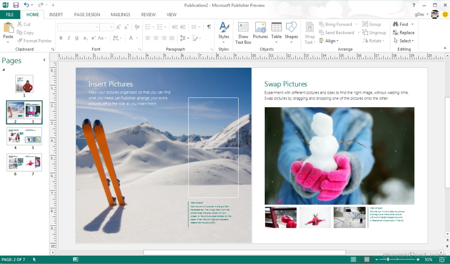 Với Publisher, người dùng có thể tạo tờ gấp, catalogue, danh thiếp, bưu thiếp, thiệp mời hoặc các bản tin nội bộ mà không cần thuê thiết kế đồ họa. Microsoft đã khéo léo xây dựng Publisher như một phần mềm: vừa dễ sử dụng, vừa không yêu cầu kiến thức chuyên sâu về bố cục, màu sắc, hoặc in ấn.