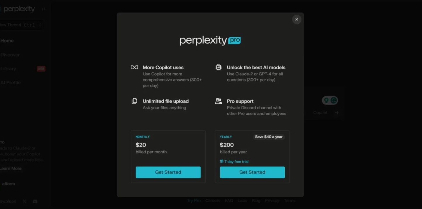 Tài khoản Perplexity hiện có hai phiên bản: miễn phí và Pro. Phiên bản miễn phí đã đủ mạnh cho hầu hết nhu cầu cơ bản: bạn có thể tìm kiếm, hỏi đáp và nhận phản hồi chất lượng. Tuy nhiên, bản Pro mở rộng nhiều giới hạn hơn, cho phép sử dụng các mô hình AI mạnh mẽ như GPT-4 Turbo, hỗ trợ nhiều câu hỏi hơn mỗi ngày, có khả năng phân tích tài liệu dài và truy cập vào công cụ “Copilot”.