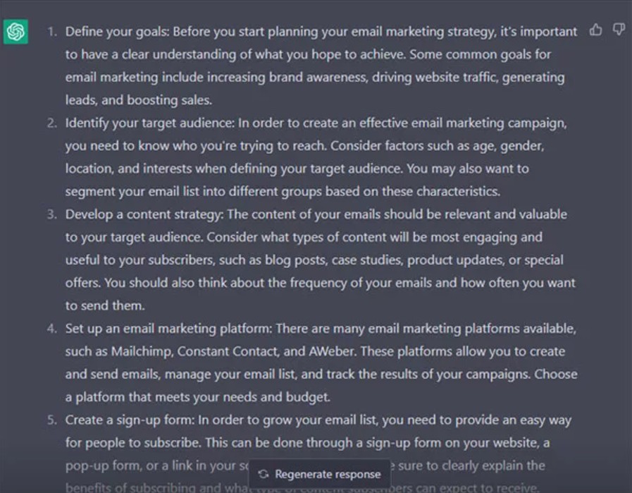 Ví dụ khi viết một bài blog dài, bạn có thể yêu cầu ChatGPT xây dựng outline trước. Sau đó kiểm tra, chỉnh sửa và yêu cầu mô hình phát triển từng phần nội dung theo outline đã phê duyệt. Đây là cách làm giúp đảm bảo tính nhất quán và dễ dàng chỉnh sửa trước khi triển khai nội dung hoàn chỉnh.