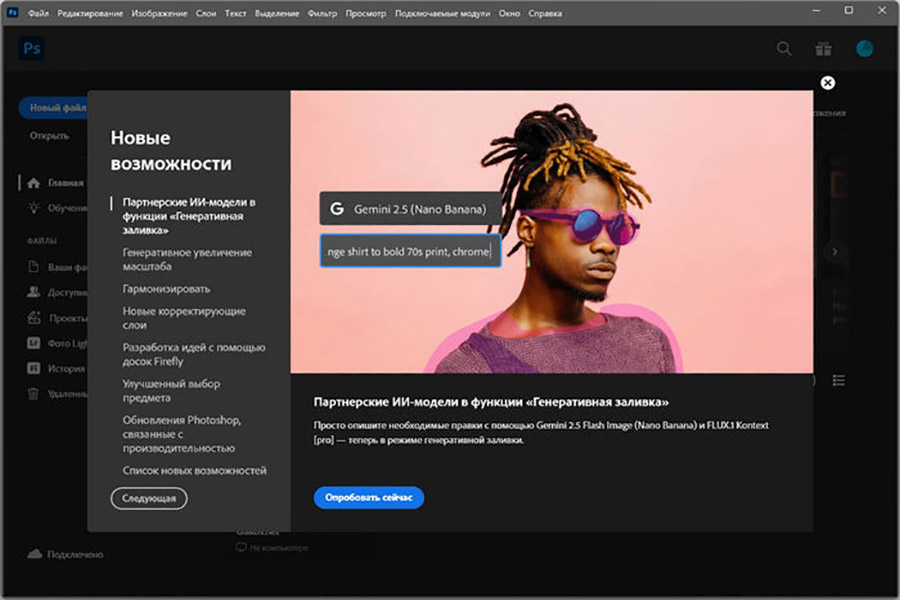 Sau khi gây bão toàn cầu ở bản 2024, Generative Fill tiếp tục được nâng cấp mạnh mẽ trong Photoshop 2026 với “Partner Model System” – mô hình cho phép người dùng chọn engine AI của bên thứ ba.