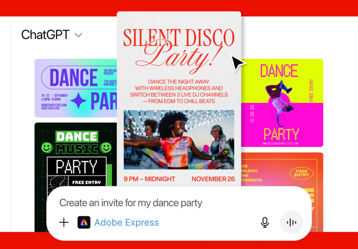 Adobe Express được định vị là công cụ thiết kế dành cho số đông và khi tích hợp vào ChatGPT, vai trò này càng được thể hiện rõ. Người dùng có thể yêu cầu AI tạo thiết kế dựa trên mẫu có sẵn, sau đó tùy chỉnh văn bản, hình ảnh, màu sắc, bố cục hoặc hoạt ảnh theo nhu cầu.