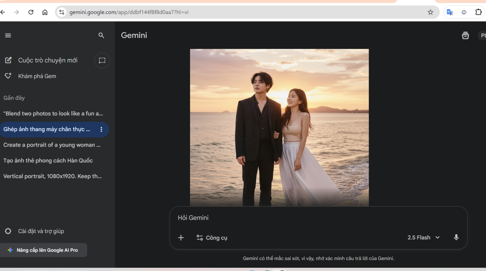 Dùng Gemini Pro để có chất lượng cao nhất: Bản Gemini Pro cho phép xử lý chi tiết khuôn mặt, ánh sáng và cảm xúc tốt hơn rất nhiều so với bản thường.