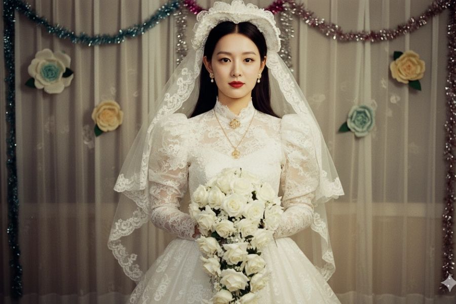 Gemini có thể tạo hàng loạt phong cách ảnh cưới khác nhau cho bạn lựa chọn từ cô dâu châu Âu thanh lịch trong váy ren trắng, nàng dâu Việt truyền thống với áo dài đỏ rực, đến phong cách cổ điển mang hơi hướng retro của thập niên 80–90. Mỗi phong cách đều có prompt riêng giúp hình ảnh tái hiện chân thực từng chi tiết từ chất liệu váy, ánh sáng, kiểu tóc cho đến cảm xúc trong ánh mắt.