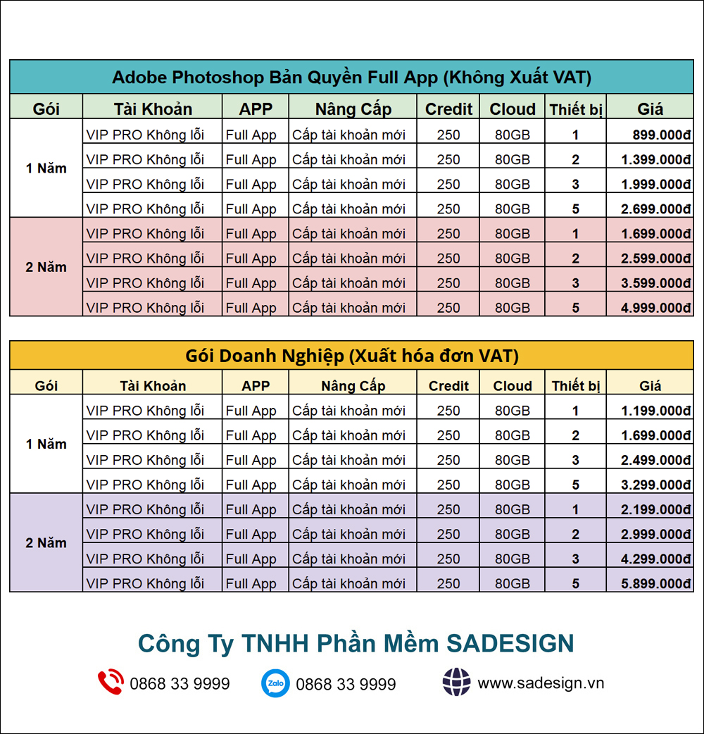 SaDesign tự hào là đơn vị cung cấp gói Adobe Photoshop Full App với mức giá hợp lý nhất trên thị trường. Với cam kết về chất lượng và tính năng đầy đủ, bạn sẽ nhận được sản phẩm xứng đáng với số tiền đã bỏ ra. Đừng bỏ lỡ cơ hội nâng cấp trải nghiệm thiết kế của bạn ngay hôm nay!