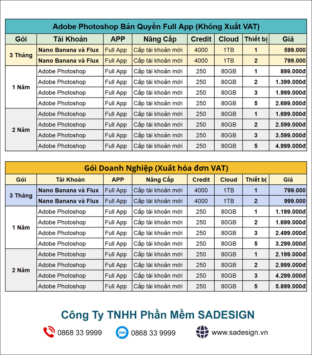 Gói tài khoản bản Bản Quyền Adobe Full App + Nano Banana và Flux 3 tháng, có sử dụng được model Nano Banana và Flux sẽ hoạt động trên Photoshop phiên bản Beta 27.0.1. Liên hệ SADESIGN cài đặt ngay