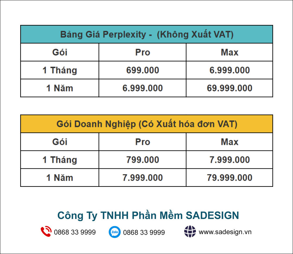 Hãy sở hữu ngay tài khoản Perplexity AI Pro để trải nghiệm khả năng tìm kiếm thông tin mạnh mẽ và đa năng, giúp bạn học hỏi và sáng tạo, làm việc, hoàn thành dự án hiệu quả hơn. Liên hệ ngay với SaDesign nếu bạn có bất kỳ thắc mắc nào hay để được hỗ trợ thao tác thanh toán, cài đặt, hướng dẫn sử dụng công cụ để được hỗ trợ nhanh chóng nhé!