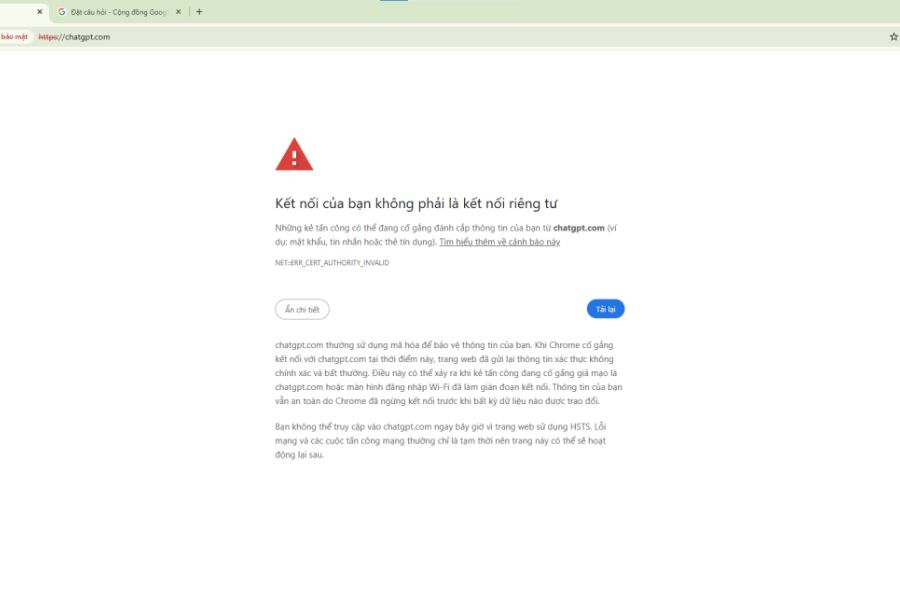 Nguyên nhân thường do mạng nội bộ hoặc DNS của nhà cung cấp Internet bị chặn kết nối đến máy chủ OpenAI. Bạn có thể thử đổi DNS sang Google (8.8.8.8 / 8.8.4.4) hoặc liên hệ nhà mạng để hỗ trợ.