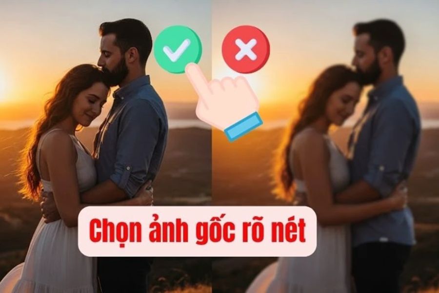 Trước hết, bạn nên chọn ảnh gốc có ánh sáng rõ ràng, khuôn mặt sắc nét và không bị che khuất bởi tóc, khẩu trang hay phụ kiện lớn. Ảnh chụp chính diện hoặc hơi nghiêng nhẹ, ánh sáng đều sẽ giúp AI nhận diện chuẩn đường nét khuôn mặt, từ đó tái tạo gương mặt giống thật và biểu cảm tự nhiên hơn. Tránh sử dụng ảnh quá tối, ngược sáng hoặc bị bóng đổ mạnh vì dễ làm giảm độ chính xác khi ghép ảnh cặp đôi.