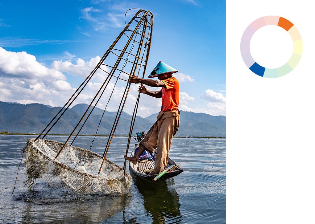 Phối màu tương đồng (Analogous) sử dụng các màu nằm liền kề nhau như vàng – cam – đỏ, mang lại cảm giác ấm áp và hài hòa. Loại phối này thường thích hợp cho ảnh phong cảnh hoặc ảnh thiên nhiên.
