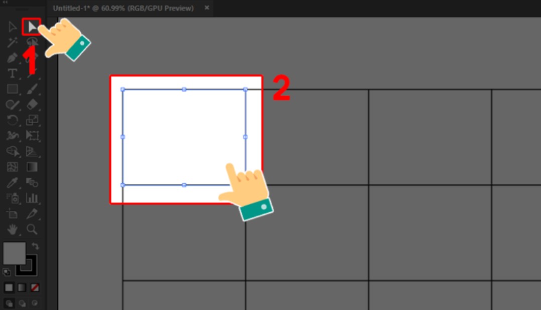 Sử dụng Selection Tool (phím tắt V) và click chọn hình chữ nhật vừa vẽ. Đây là bước quan trọng để Illustrator nhận diện đối tượng cần chia lưới. Bạn cần đảm bảo khung được chọn chính xác, tránh tình trạng chia nhầm đối tượng khác trên Artboard.