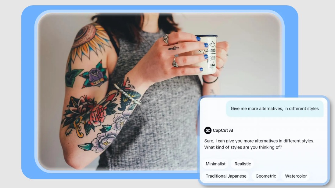 Sự xuất hiện của trí tuệ nhân tạo đã mở ra một hướng đi hoàn toàn mới cho lĩnh vực này. Công cụ tạo hình xăm bằng AI cho phép người dùng dễ dàng biến ý tưởng thành thiết kế cụ thể chỉ trong vài giây. Không cần kỹ năng vẽ tay hay kiến thức thiết kế chuyên sâu, bạn vẫn có thể tạo ra những hình xăm chất lượng cao, phù hợp với phong cách và ý nghĩa cá nhân của mình. Đặc biệt, với sự hỗ trợ từ các nền tảng như CapCut, quá trình này trở nên trực quan, nhanh chóng và đầy cảm hứng hơn bao giờ hết.