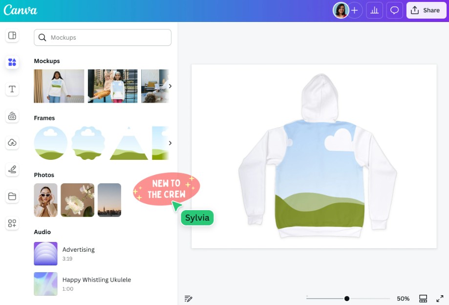 Với Canva, việc thiết kế áo hoodie mang thương hiệu trở nên cực kỳ đơn giản. Bạn có thể tải logo lên, sử dụng phông chữ riêng và điều chỉnh màu sắc theo bộ nhận diện thương hiệu. Tất cả được thực hiện trong cùng một giao diện, không cần chuyển đổi giữa nhiều phần mềm.