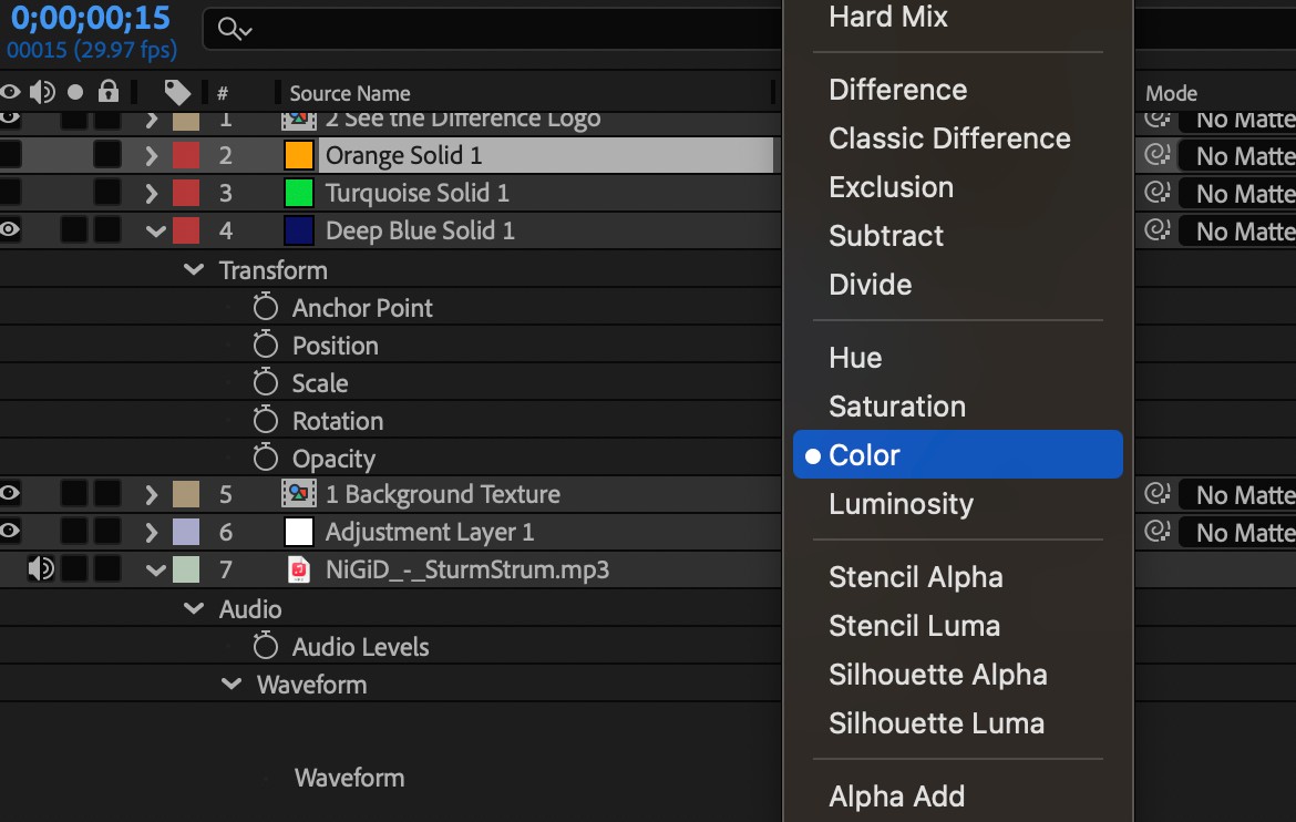 Ngoài ra, Blending Modes còn là công cụ mạnh mẽ để xử lý màu sắc. Bằng cách sử dụng các chế độ như Overlay hoặc Color, bạn có thể thay đổi toàn bộ mood của video một cách nhanh chóng. Thay vì chỉnh sửa từng layer riêng lẻ, bạn chỉ cần thêm một lớp màu và áp dụng chế độ phù hợp, từ đó tạo ra hiệu ứng đồng bộ và tiết kiệm thời gian đáng kể.