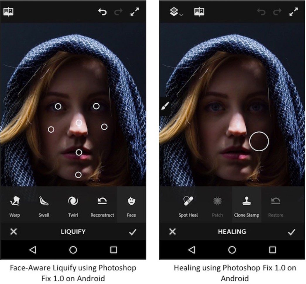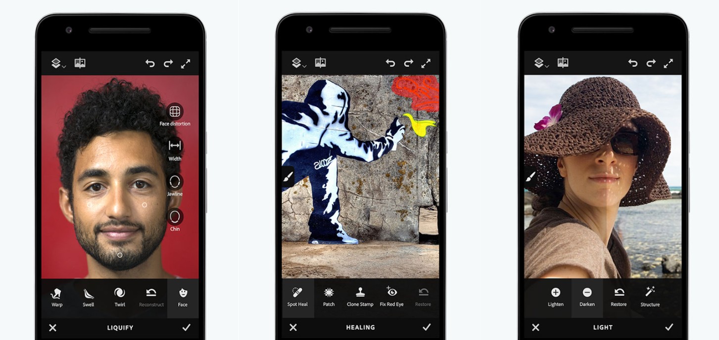 Photoshop Fix mang tinh thần retouch của Photoshop lên điện thoại. Ứng dụng này rất mạnh trong việc chỉnh sửa chân dung, từ làm mịn da, xóa khuyết điểm cho đến chỉnh hình khuôn mặt ở mức tinh tế.