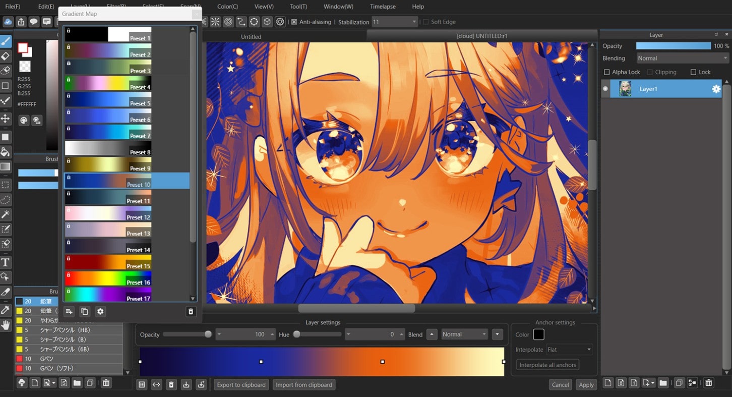 Phần mềm này cung cấp đầy đủ công cụ phục vụ vẽ manga như lineart, tone, panel và quản lý trang truyện. Ngoài ra, MediBang còn tích hợp thư viện brush và texture phong phú, hỗ trợ tốt cho phong cách vẽ anime, manga.