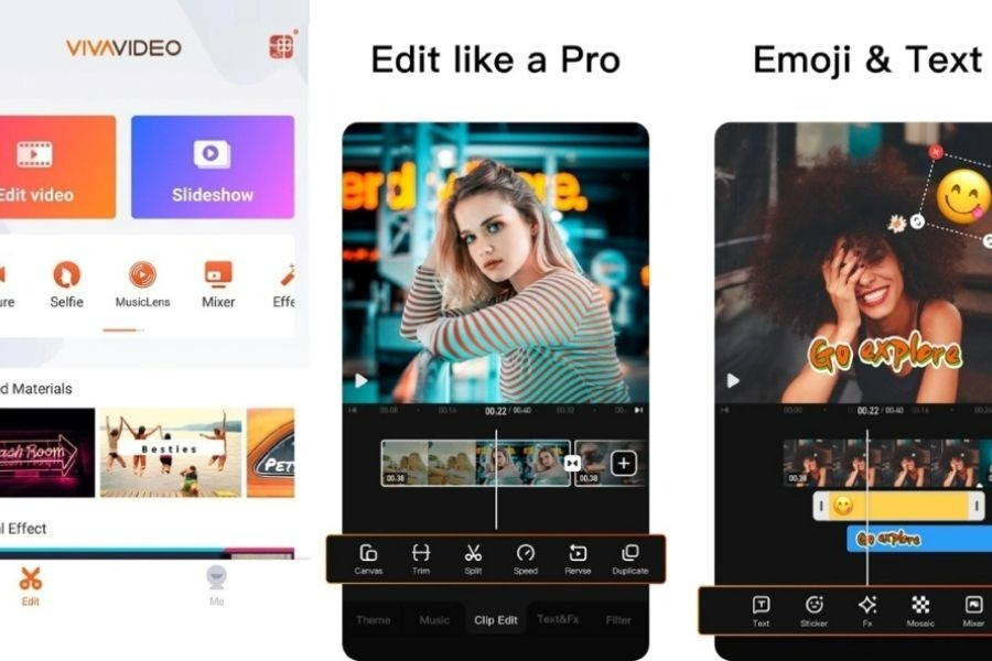 VivaVideo là app làm video TikTok quen thuộc với nhiều người dùng nhờ cách chỉnh sửa đơn giản nhưng vẫn đáp ứng tốt nhu cầu sáng tạo nội dung. Ứng dụng cung cấp đầy đủ các công cụ cơ bản để cắt, ghép và dựng video nhanh chóng, giúp người dùng dễ dàng tạo ra những clip TikTok có bố cục rõ ràng và dễ xem. Nhờ thao tác thân thiện, VivaVideo phù hợp cả với người mới bắt đầu lẫn những ai muốn chỉnh sửa video ngay trên điện thoại.