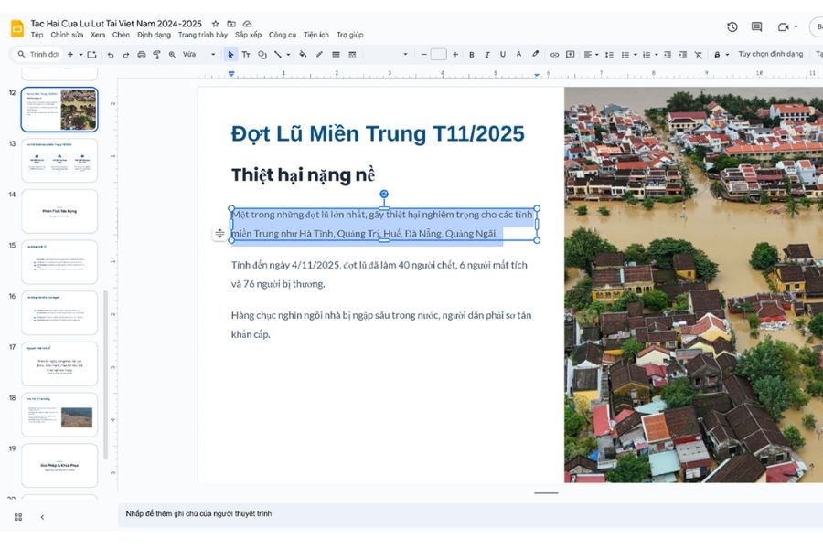 Dù vậy, phong cách thiết kế vẫn còn cơ bản, chưa có nhiều mẫu đa dạng như Canva, và đôi khi xuất hiện lỗi font tiếng Việt. Tuy nhiên, việc sửa chữa lại rất đơn giản chỉ cần ra lệnh “điều chỉnh phông chữ phù hợp với tiếng Việt”, Gemini sẽ tự động làm lại toàn bộ. Đối với sinh viên, giáo viên hay doanh nghiệp nhỏ, đây là công cụ cực kỳ hữu ích để tiết kiệm thời gian mà vẫn đảm bảo tính chuyên nghiệp.