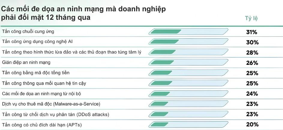 Ngoài ra, nhận thức về tấn công chuỗi cung ứng vẫn còn hạn chế. Dù tỷ lệ doanh nghiệp bị ảnh hưởng là khá cao nhưng chỉ một phần nhỏ thực sự coi đây là mối đe dọa nghiêm trọng cần ưu tiên. Sự chênh lệch giữa nhận thức và thực tế này khiến nhiều tổ chức không có sự chuẩn bị cần thiết, từ đó làm gia tăng rủi ro khi xảy ra sự cố.
