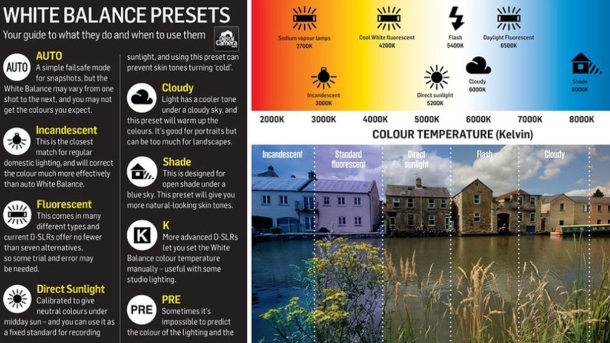 Ánh sáng từ các nguồn khác nhau mang màu sắc riêng biệt. Ví dụ, ánh đèn sợi đốt tạo ra sắc vàng ấm, trong khi đèn huỳnh quang có xu hướng tạo ra sắc xanh. Nếu không điều chỉnh cân bằng trắng, hình ảnh sẽ bị ám màu và không phản ánh đúng thực tế.