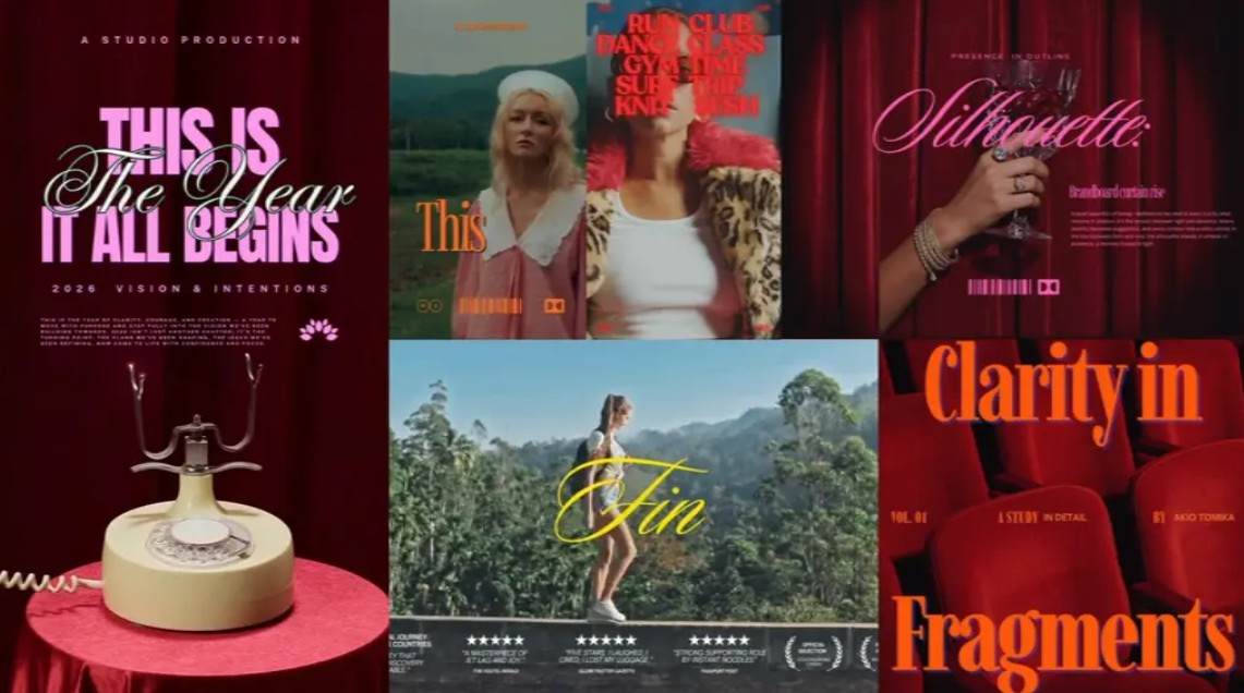 Drama Club là xu hướng thiết kế lấy cảm hứng từ điện ảnh và sân khấu. Trong phong cách này, hình ảnh được xây dựng như những cảnh phim với ánh sáng mạnh, bố cục kịch tính và kiểu chữ nổi bật.