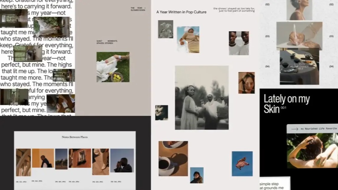 Trong thiết kế Notes App Chic, các yếu tố như chữ viết tay, hình vẽ nguệch ngoạc, hình ảnh cắt dán và các đoạn ghi chú ngắn được kết hợp với nhau để tạo thành một bố cục tự do. Điều này tạo ra cảm giác chân thật, như thể người xem đang nhìn vào quá trình sáng tạo chứ không phải chỉ sản phẩm cuối cùng.